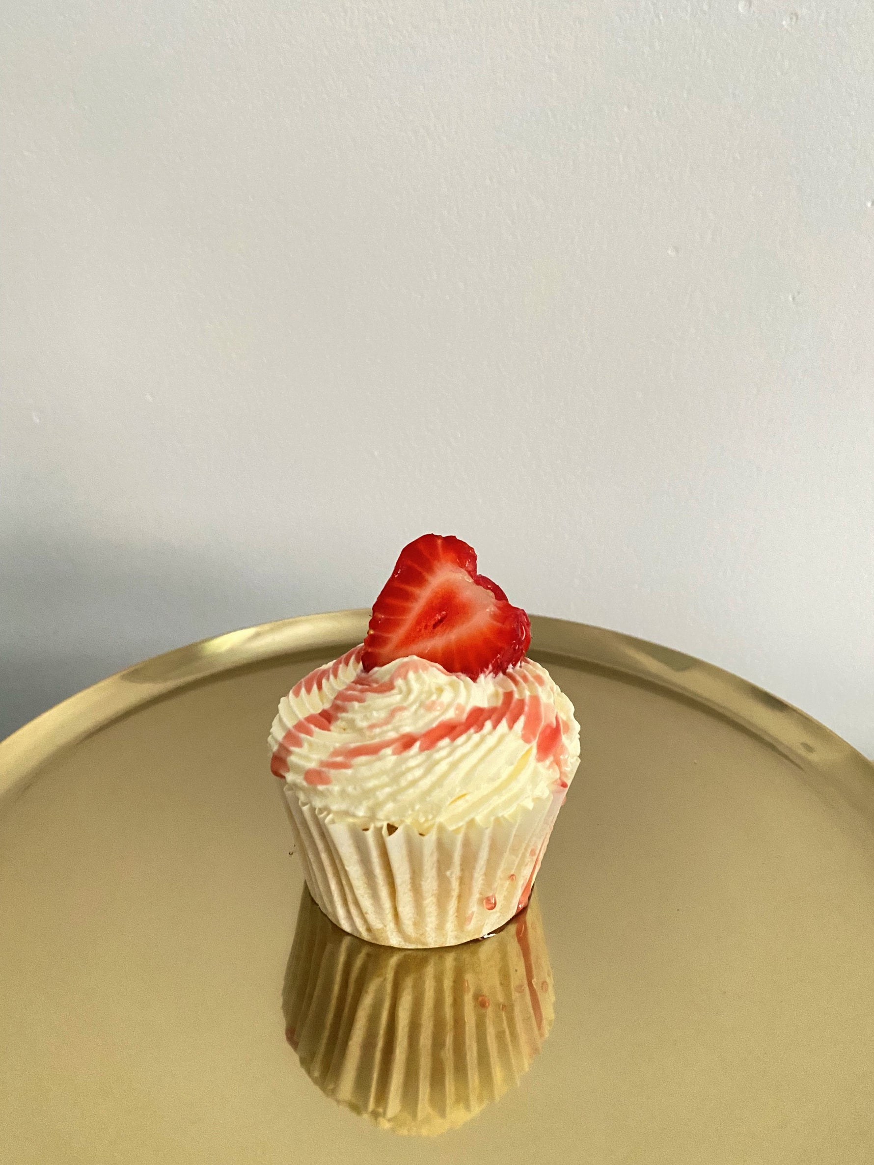 Unit price perDescription: Our classic Victoria cupcake. Fluffy vanilla sponge, filled with our sweet strawberry conserve, topped with Fresh cream.