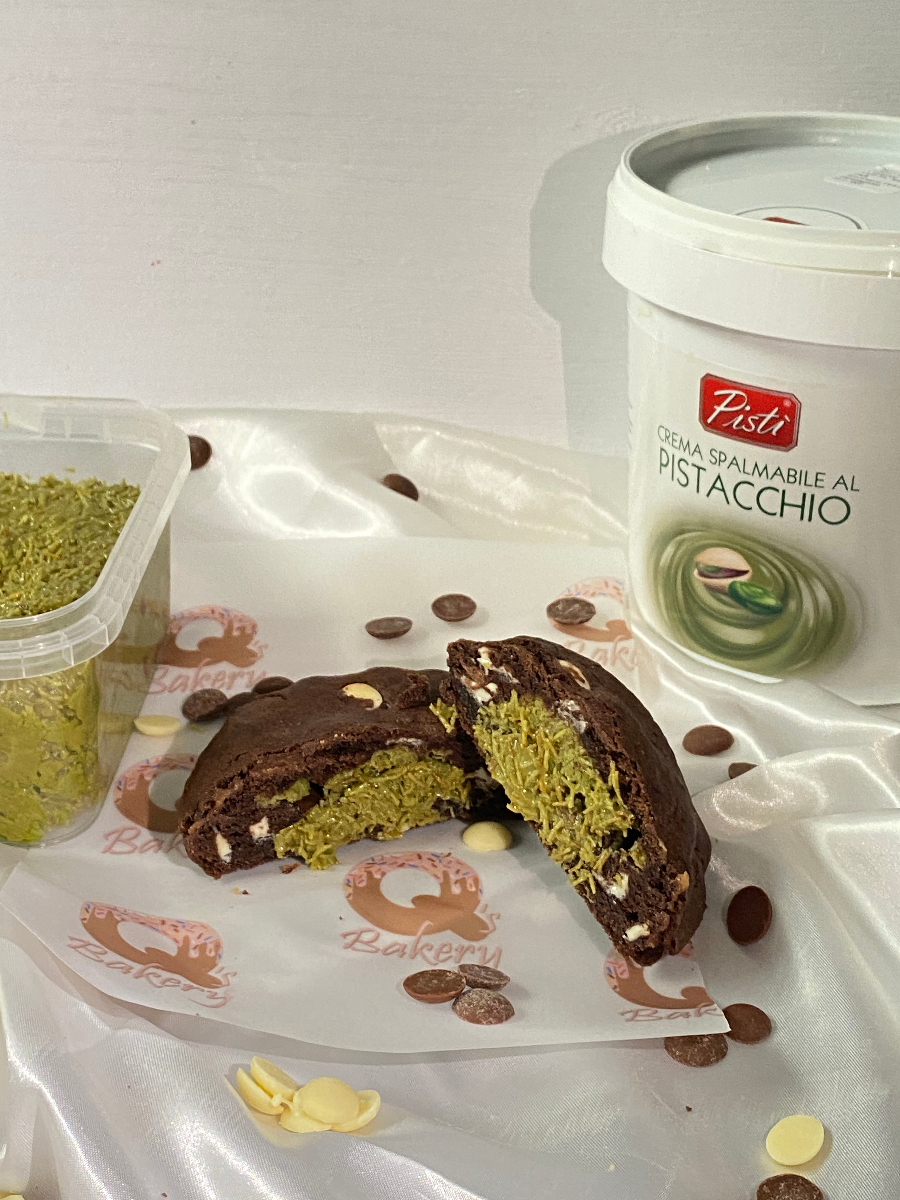 Inspired by the viral Dubai chocolate sensation, our Limited Edition Pistachio Kunafa NYC Cookie brings a unique fusion of flavours to your palate. This decadent treat features a rich chocolate base cookie, generously embedded with Belgian milk and white chocolate chunks for a harmonious blend of sweetness.